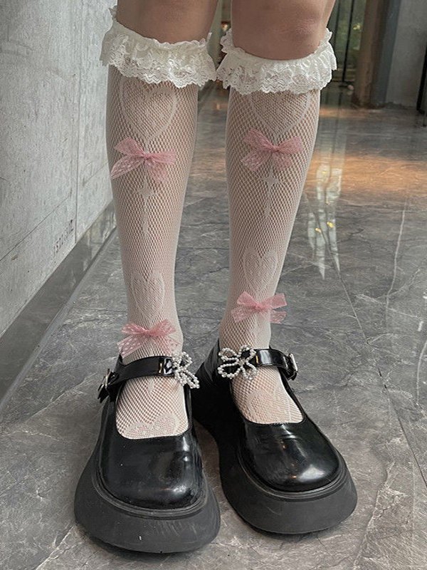 Calcetines de malla de encaje con volantes Lolita