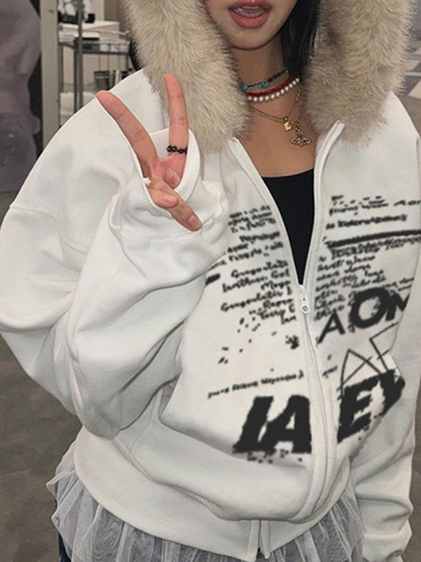 Chaqueta con estampado de letras simples estilo retro